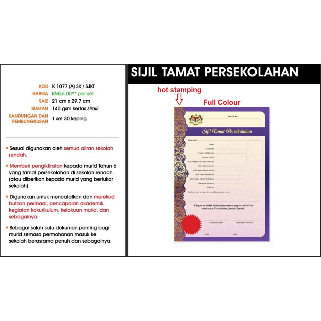 Ready Stock Buku Sijil Tamat Pelajaran Sekolah Rendah
