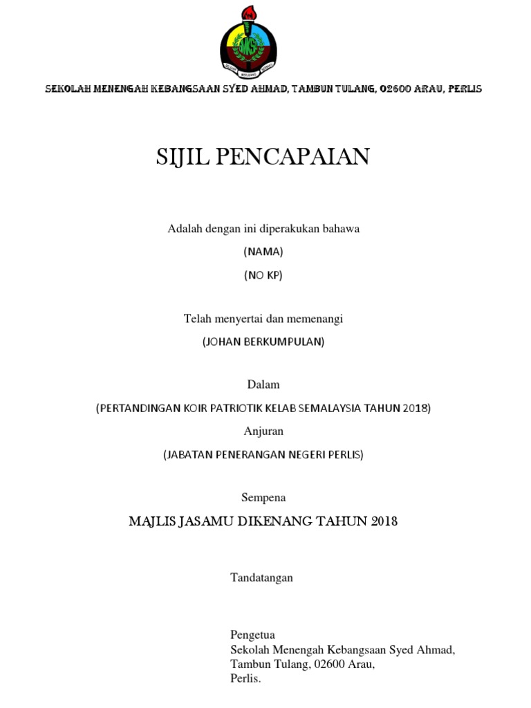 Untuk makluman template sijil ini adalah berformat pptx Microsoft Power Point. Bacaan Doa Sempena Hari Anugerah Kecemerlangan. 90 lampiran dan contoh sijil 91 lampiran apcp 01 panduan mengisi borang apcp 01 a dan apcp 02 a 92 lampiran apcp 01 a borang pencalonan pelajar anugerah kecemerlangan akademik dan kokurikulum 93 lampiran apcp 01 b kriteria pemarkahan anugerah kecemerlangan akademik dan kokurikulum 94 lampiran apcp 02 a borang.