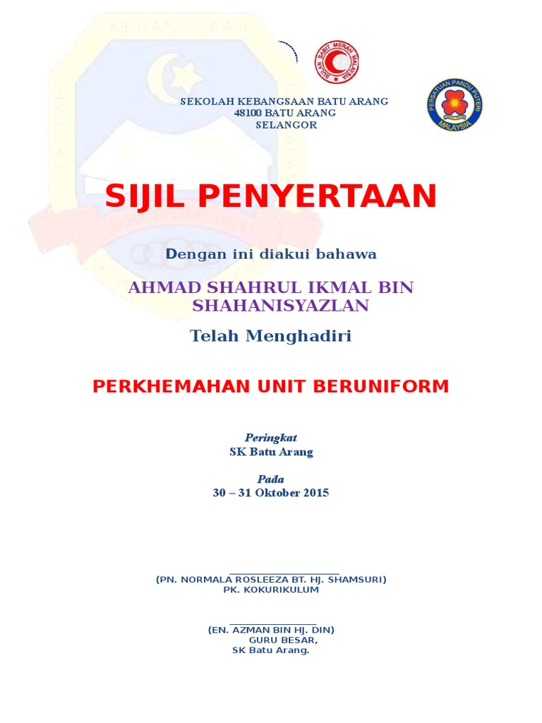 Templet sijil perkhemahan unit beruniform. Perkhemahan unit beruniform adalah salah satu saluran pendidikan luar bilik darjah yang amat berkesan dalam usaha menangani segala bentuk masalah gejala sosial. Majlis penyerahan beg sekolah oleh seri pajam development sdn bhd. Perniagaanoperasi sijil-sijil pendaftaran syarikat penyata bank memorandumperjanjian dan lain-lain yang berkaitan.